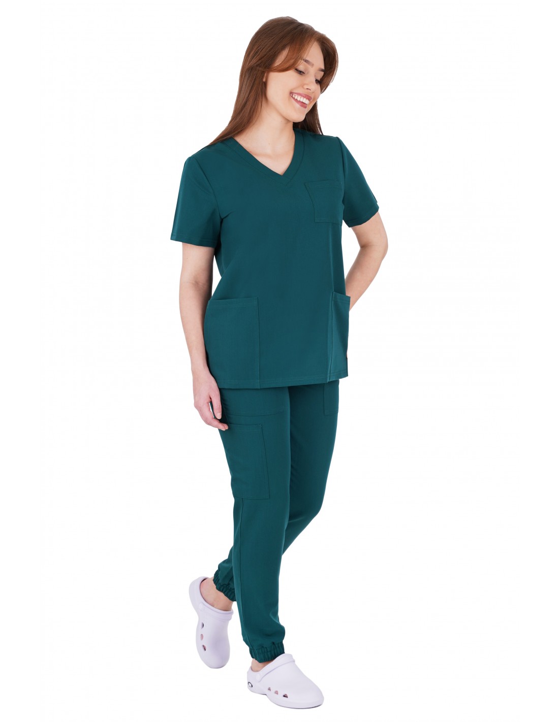 Mundurek medyczny damski kolor zielony butelkowy elastan poliester