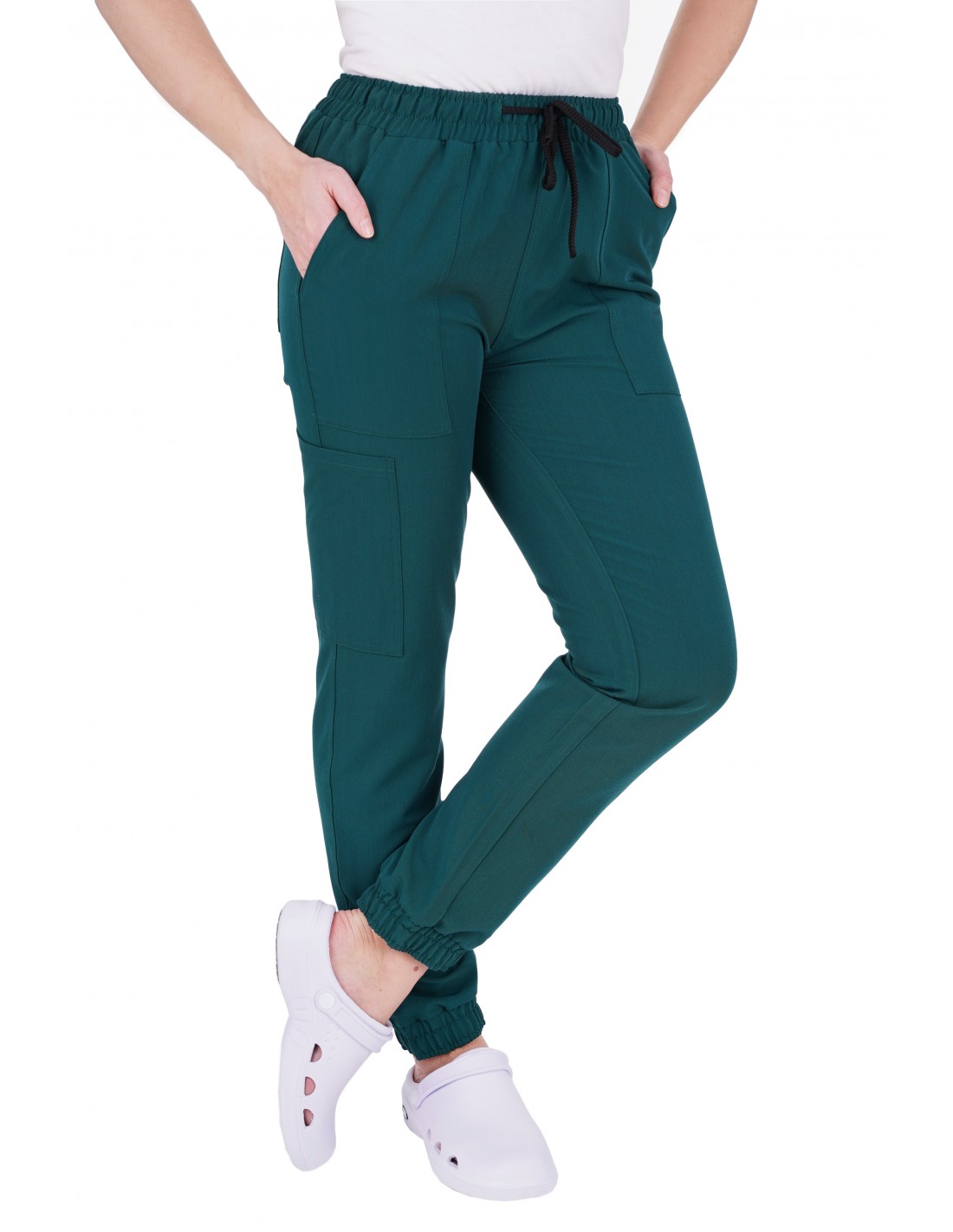 Spodnie medyczne damskie joggery wykonane z elastycznego materiału z dodatkiem sztucznego  jedwabiu to doskonała propozycja odzieży medycznej , która gwarantuje komfort pracy, swobodę ruchów oraz świetne dopasowanie do każdej sylwetki. Dzięki takiemu połączeniu włókien, tkanina jest miękka, elastyczna i wytrzymała, a przede wszystkim przewiewna.