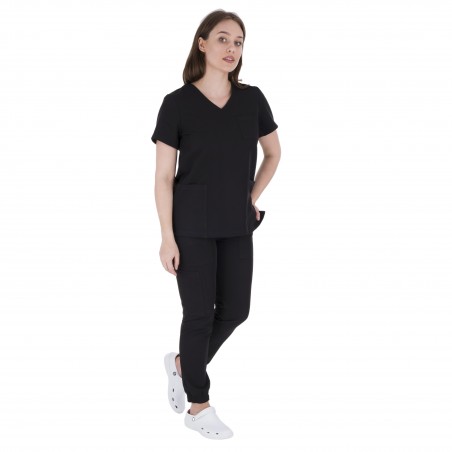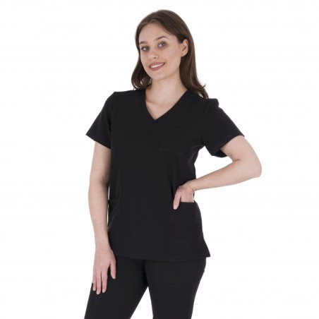 Bluza medyczna damska wykonana z elastycznego materiału z dodatkiem sztucznego jedwabiu to doskonała propozycja odzieży medycznej , która gwarantuje komfort pracy, swobodę ruchów oraz świetne dopasowanie do każdej sylwetki. Dzięki takiemu połączeniu włókien, tkanina jest miękka, elastyczna i wytrzymała, a przede wszystkim przewiewna . Wiskoza wyjątkowo dobrze łączy się z innymi włóknami i sprawia, że ubrania są bardzo miękkie. Lycra sprawia, ze tkanina jest elastyczna i dopasowuje się do ciała.