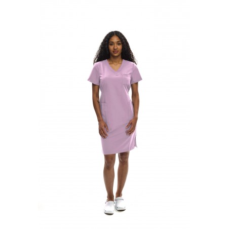Sukienka medyczna znana też jako sukienka chirurgiczna charakteryzuje się tym, że jest wkładana przez głowę i zawiązywana z tyłu na trok, po lewej stronie na dole posiada rozporek ok 5 cm. Długość sukienki medycznej jest idealna , sięgająca do kolan.